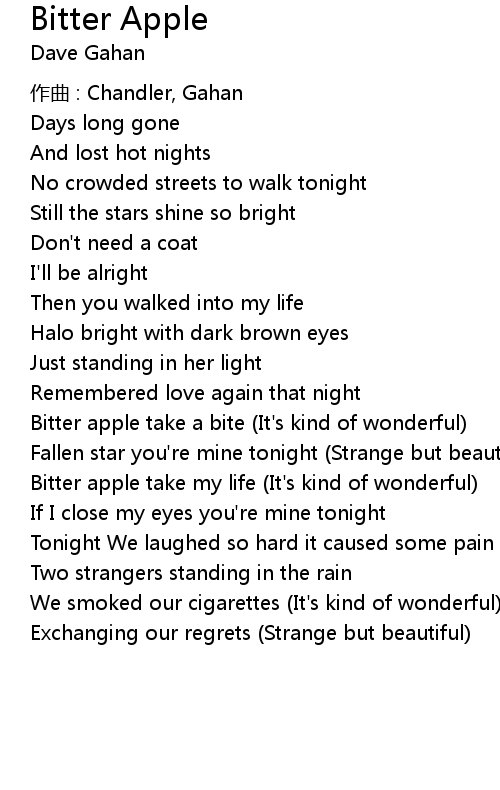 | Bitter apple take my life It' s kind of wonderful | |