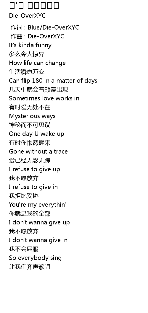 | [00:01.000] | zuò qǔ : DieOverXYC |