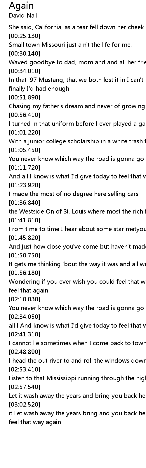 Wondering if you ever wish you could feel that way again, oh, and way feel that again |