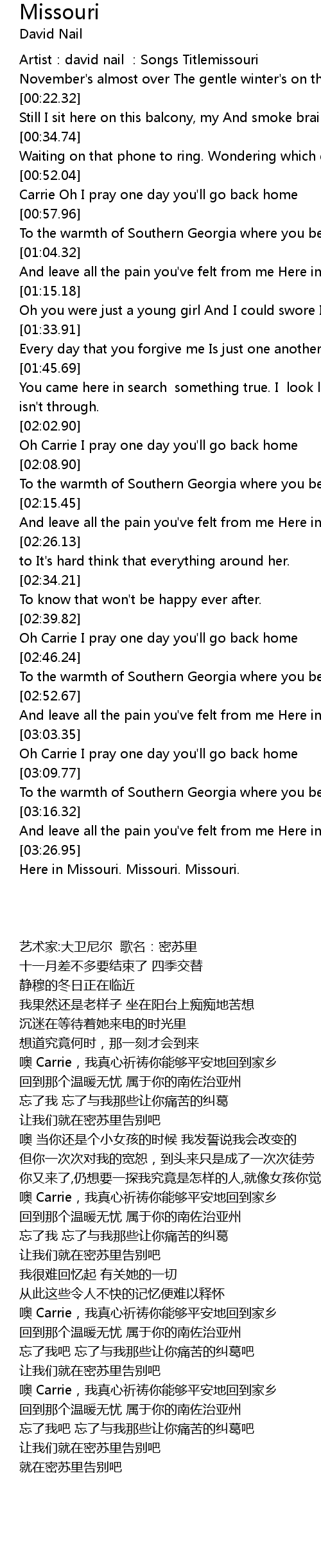 | [02:56.43] | And leave all the pain you' ve felt from me Here in Missouri. |