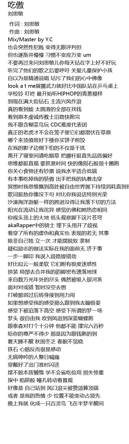 | [01:11.551] | akaRapper zhōng de qí shì mái xià tou shuǎi kāi le qí shì |