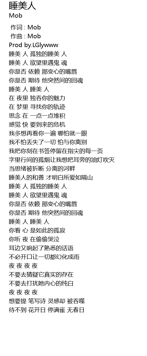 | [00:00.000] | 作词 : Mob |