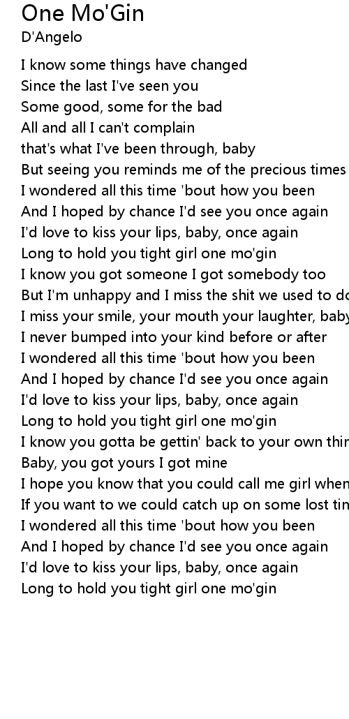 | Long to hold you tight girl one mo'gin |