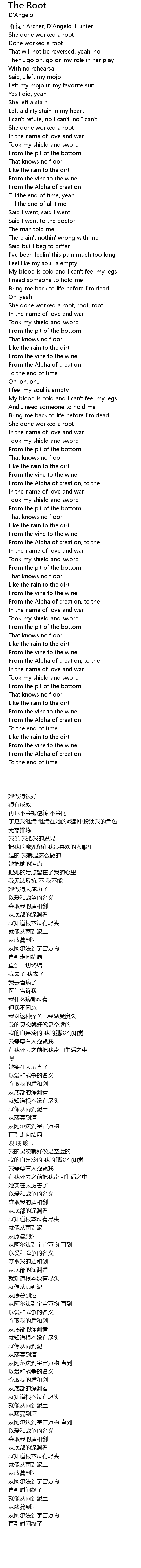 | [00:00.00] | zuò cí : Archer, D' Angelo, Hunter |