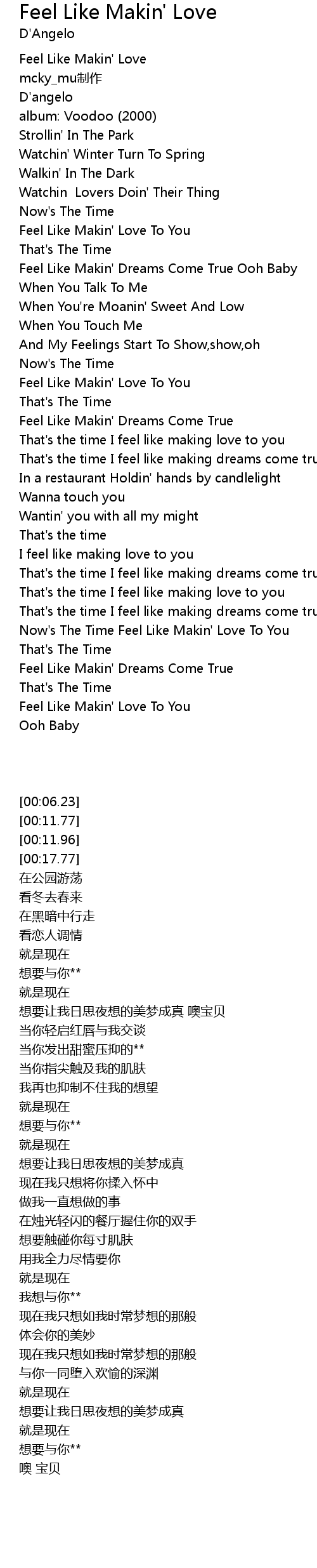 | [00:59.28] | Feel Like Makin' Dreams Come True Ooh Baby |