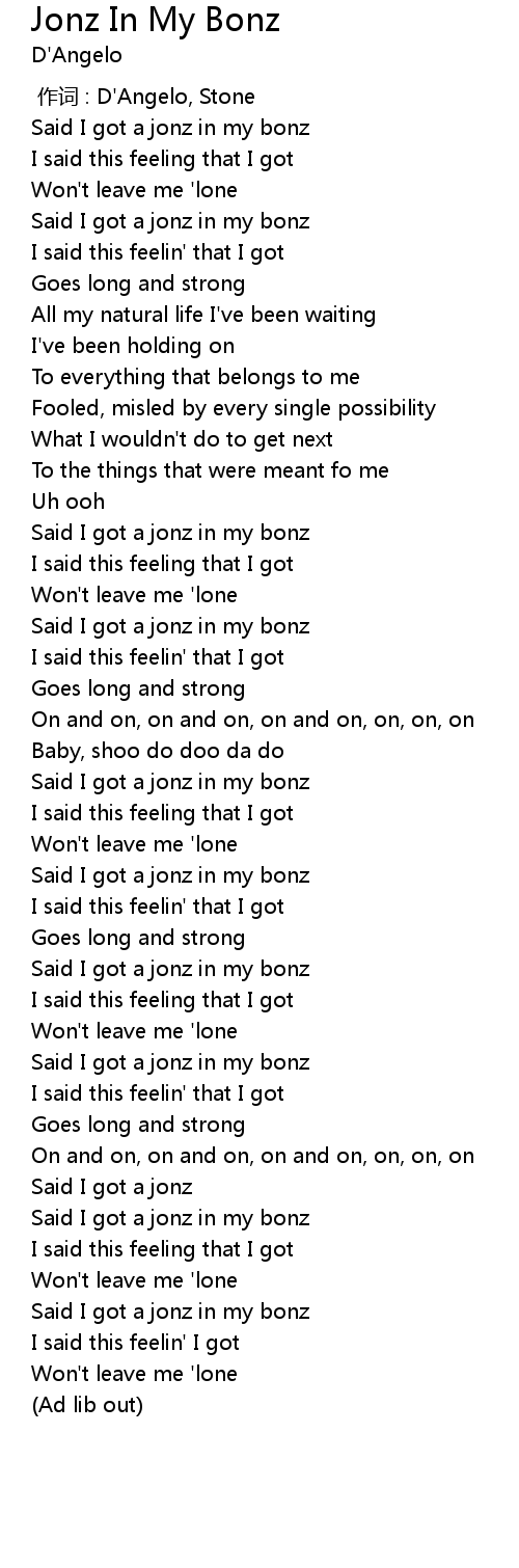 | [00:00.00] | 作词 : D'Angelo, Stone |