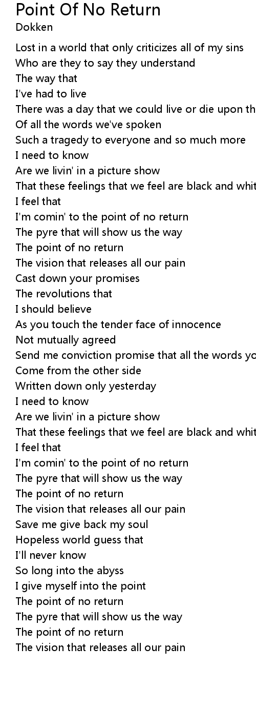 Point Of No Return Lyrics