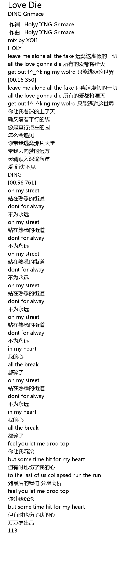 | [00:00.000] | 作词 : Holy/DING Grimace |