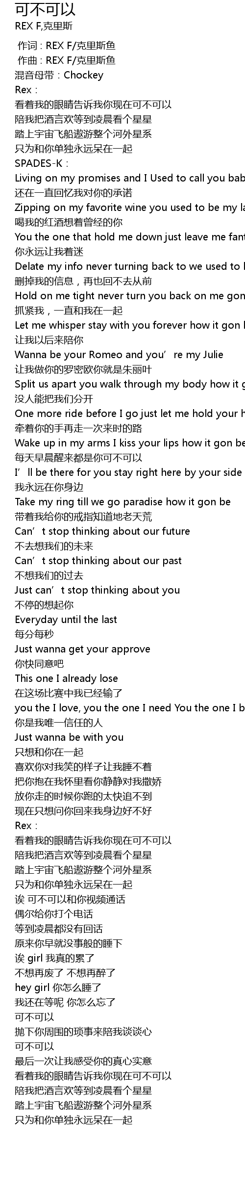 | [00:00.000] | zuo ci : REX F ke li si yu |