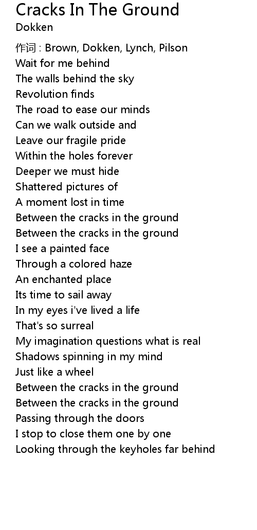 | Song | Cracks In The Ground |