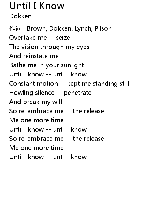 | 作词 : Brown, Dokken, Lynch, Pilson | |