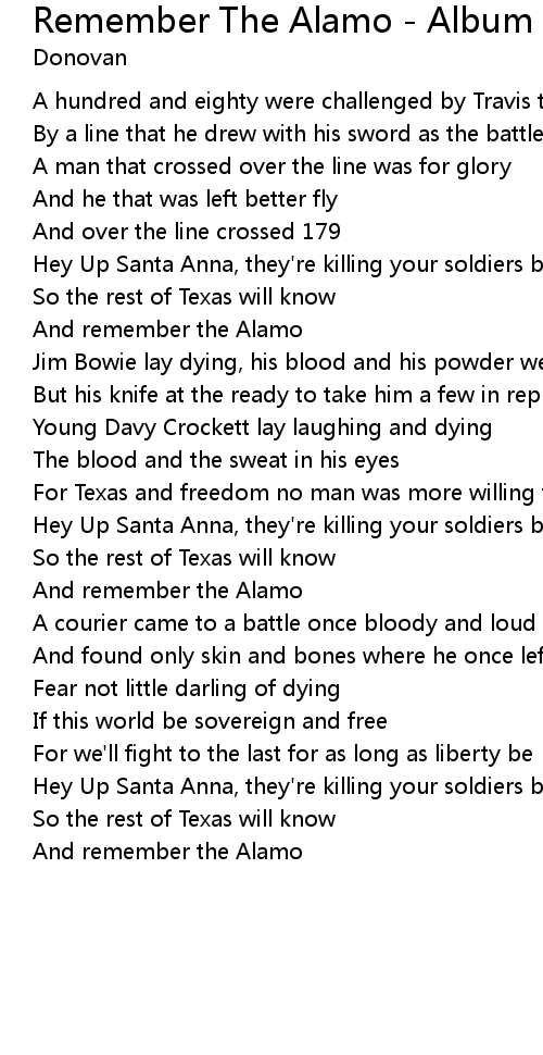 And remember the Alamo |