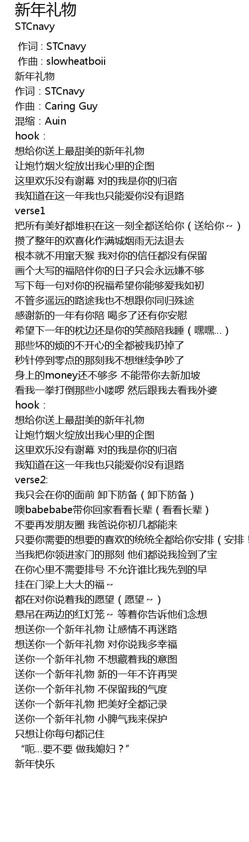 | [01:59.924] | 送你一个新年礼物 新的一年不许再哭 |