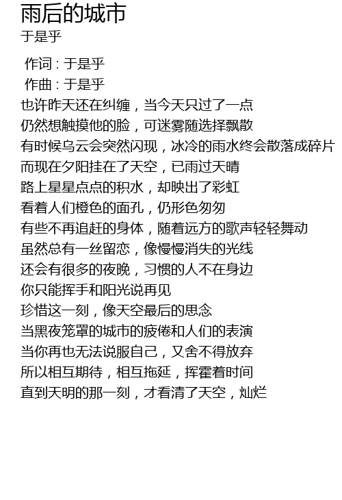 | [01:06.699] | 而现在夕阳挂在了天空,已雨过天晴 |