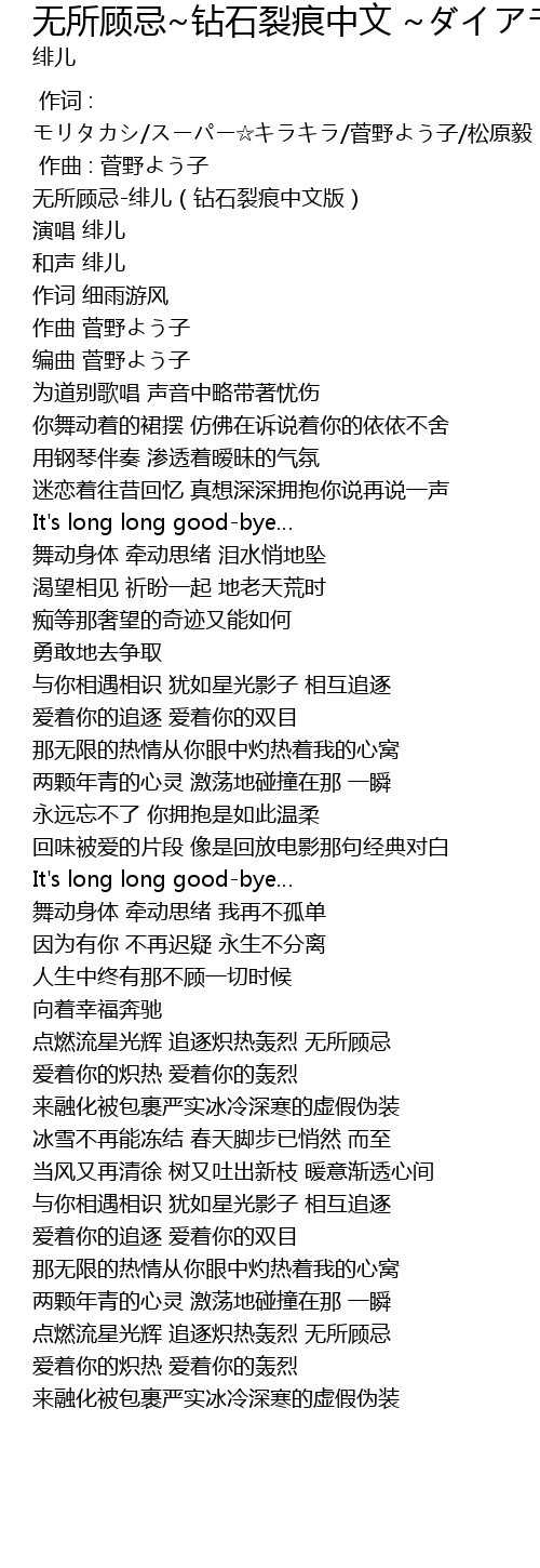 | [00:01.704] | 无所顾忌-绯儿(钻石裂痕中文版) |