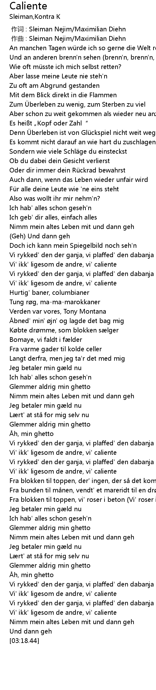 | [02:59.60] | Vi' ikk' ligesom de andre, vi' caliente |