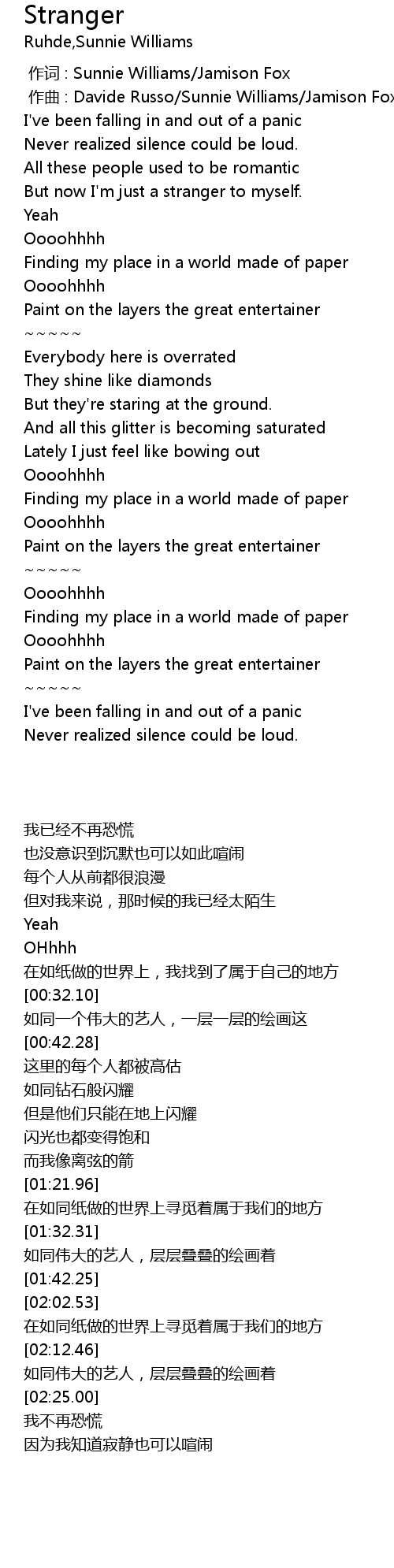 | [00:17.09] | But now I' m just a stranger to myself. |