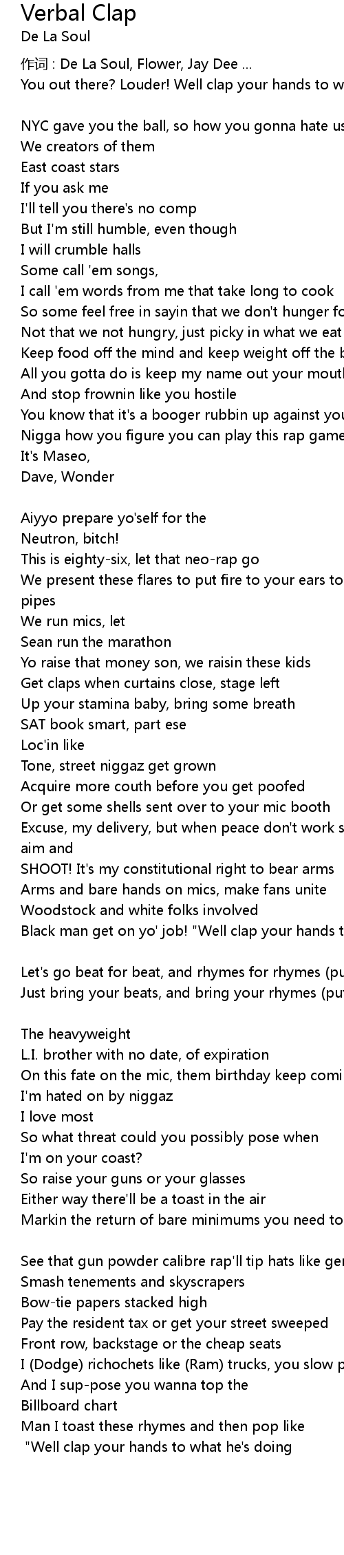 | Black man get on yo' job! " Well clap your hands to what he' s doing On tempo Jack" Chorus x2: De La Soul | |