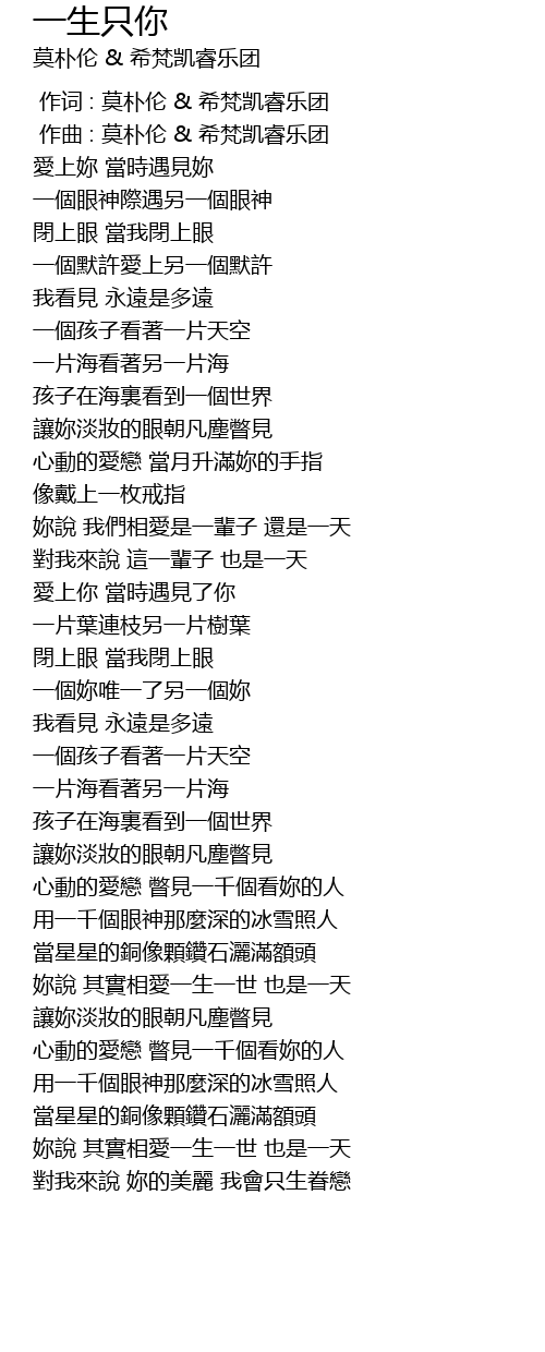 | [03:46.99] | 妳說 其實相愛一生一世 也是一天 |