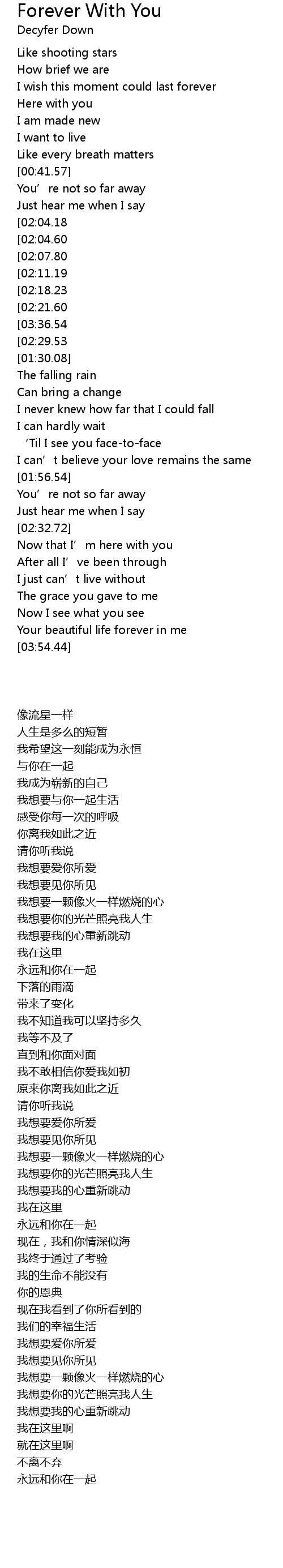 | [03:46.50][02:29.53][01:13.77] | Forever with you |