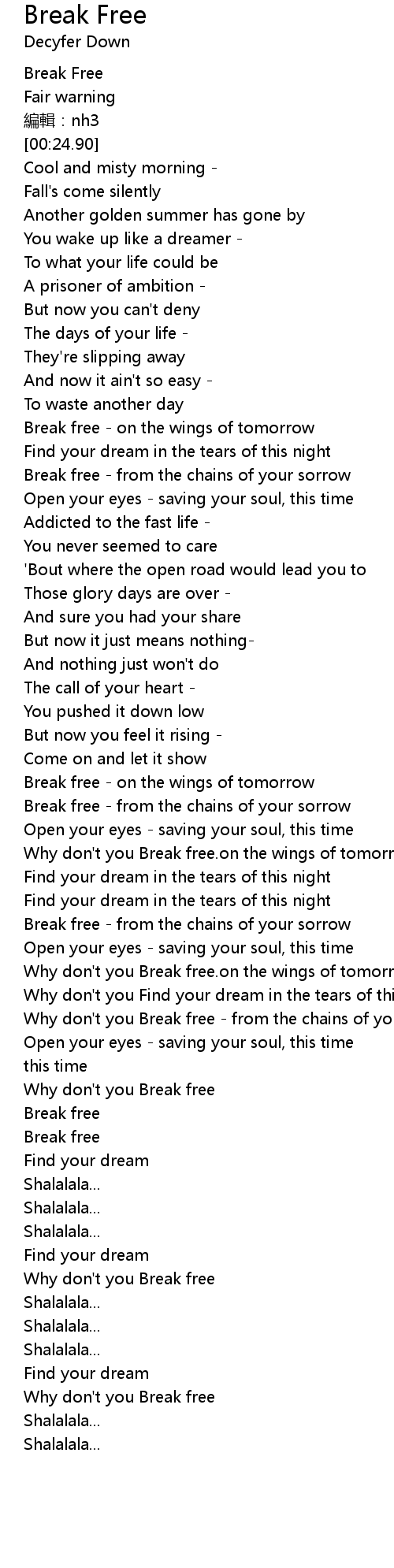 | [04:23.45] | Break free |