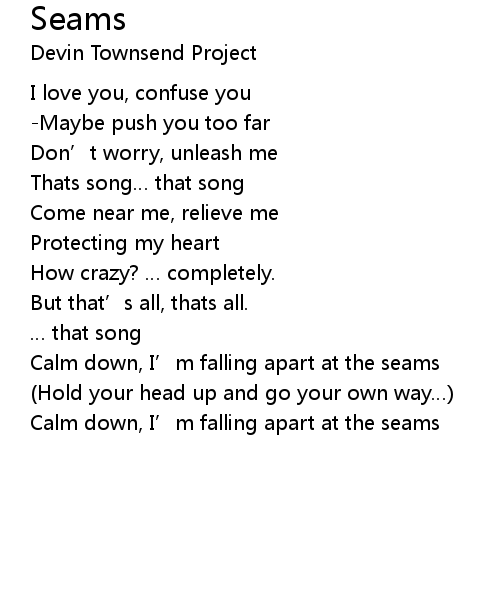 | Calm down, I' m falling apart at the seams |
