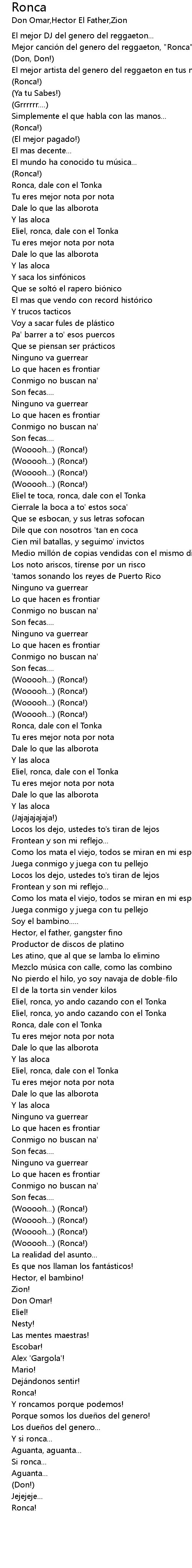 | Mejor cancio n del genero del reggaeton, " Ronca"... | |
