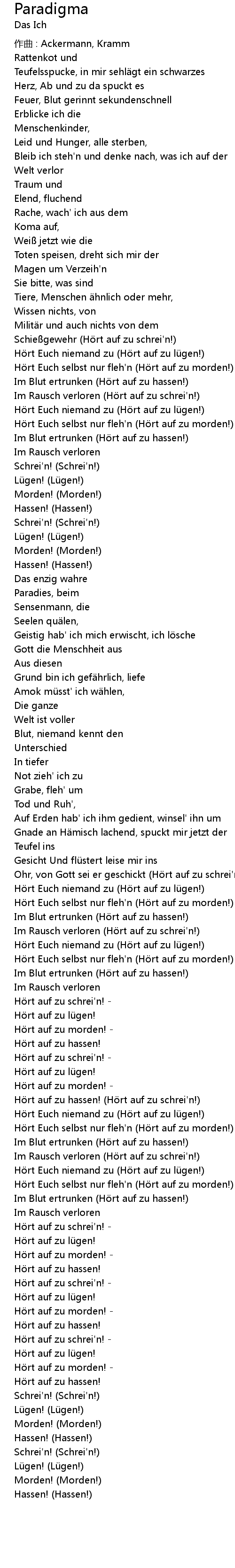| H rt auf zu hassen! H rt auf zu schrei' n! | |