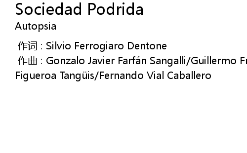 | [00:00.000] | 作曲 : Gonzalo Javier Farfán Sangalli/Guillermo Francisco Figueroa Tangüis/Fernando Vial Caballero |