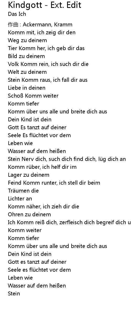 | Ich Komm rei dich, zerfleisch dich begreif dich und fü hl dich an | |