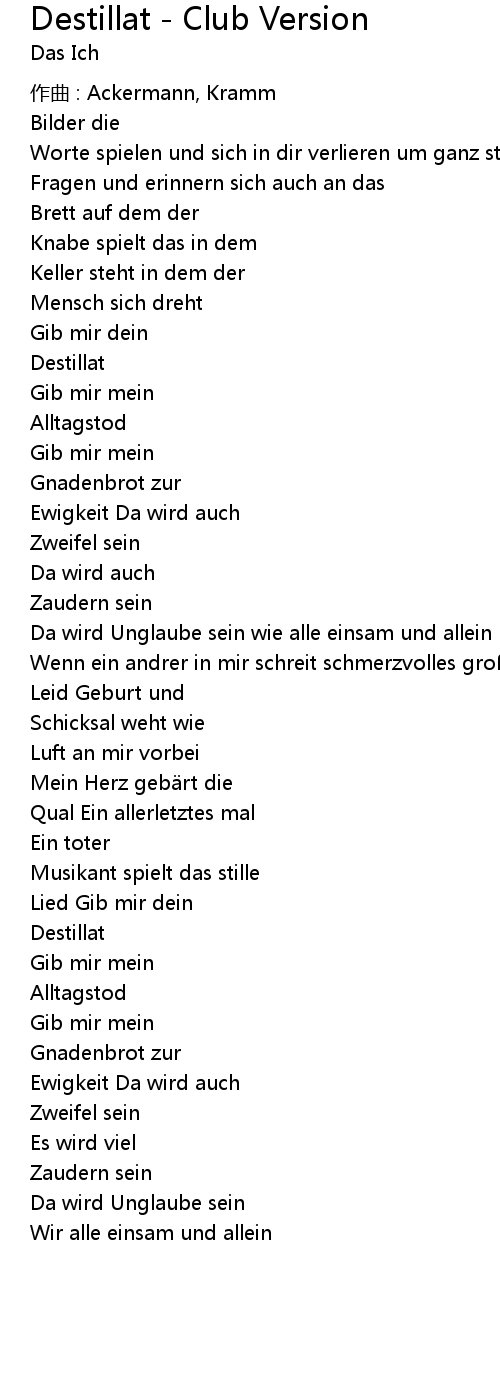 Destillat - Club Version Lyrics