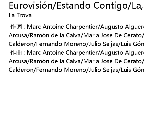 | [00:00.000] | 作曲 : Marc Antoine Charpentier/Augusto Alguero/Ramon Arcusa/Ramón de la Calva/Maria Jose De Cerato/Aniano Alcalde/Juan Carlos Calderon/Fernando Moreno/Julio Seijas/Luis Gómez Escolar/Toni Ten/Xasqui Ten |