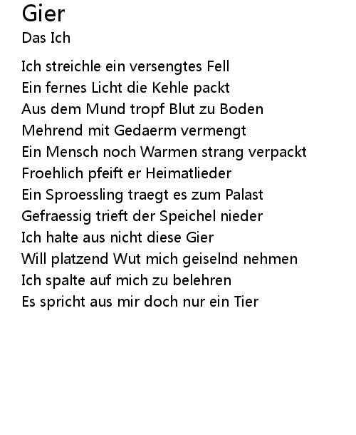 | Ich halte aus nicht diese Gier | |