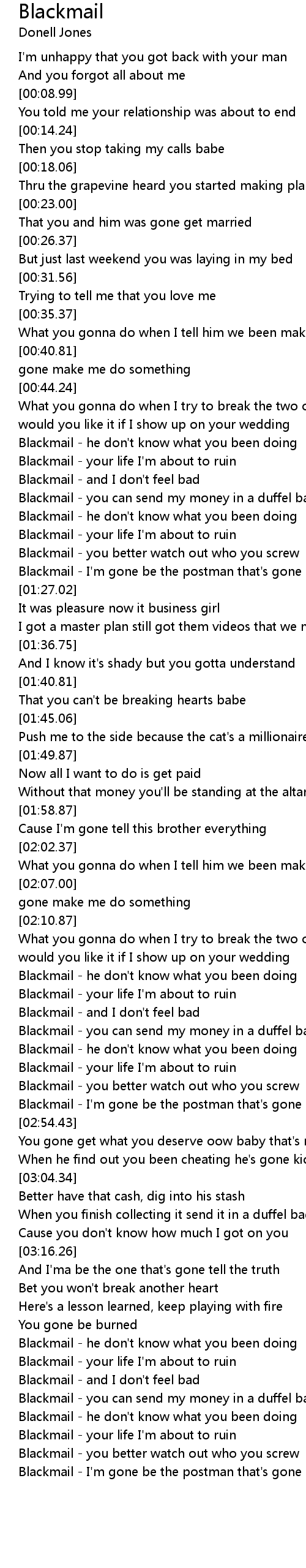 Blackmail - I'm gone be the postman that's gone deliver the truth |