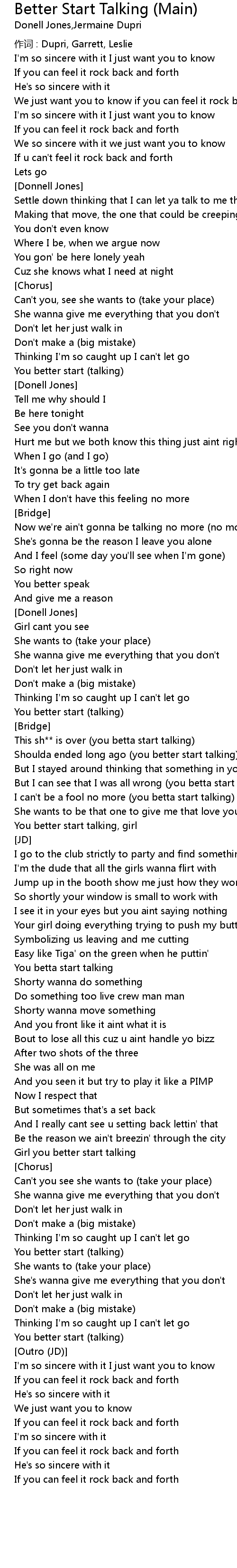 | 作词 : Dupri, Garrett, Leslie | |