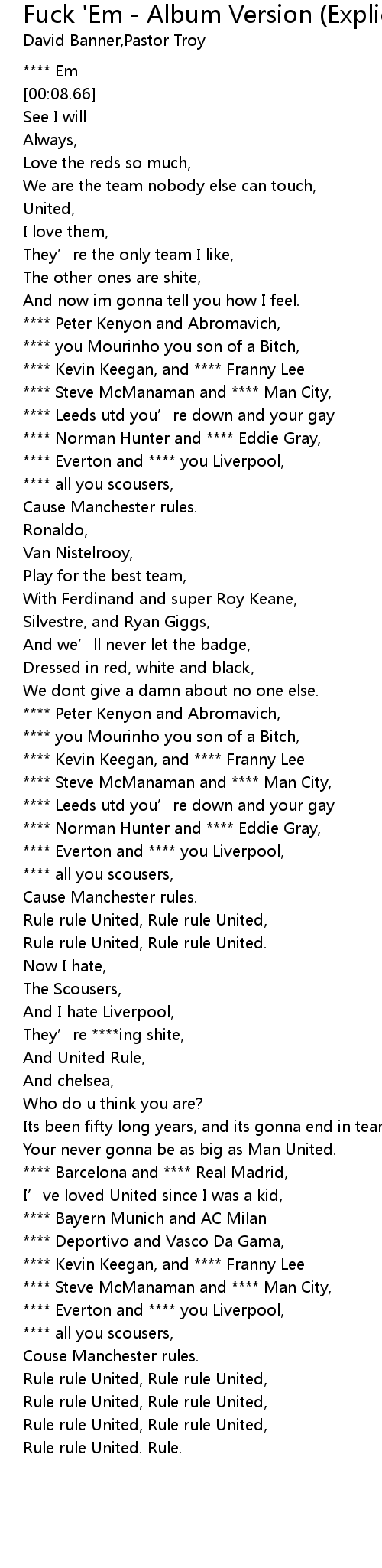 | [01:04.92] | **** Everton and **** you Liverpool, |