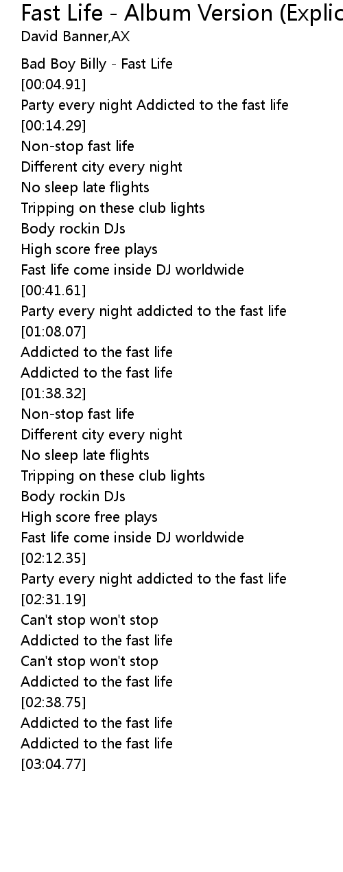 Party every night Addicted to the fast life |