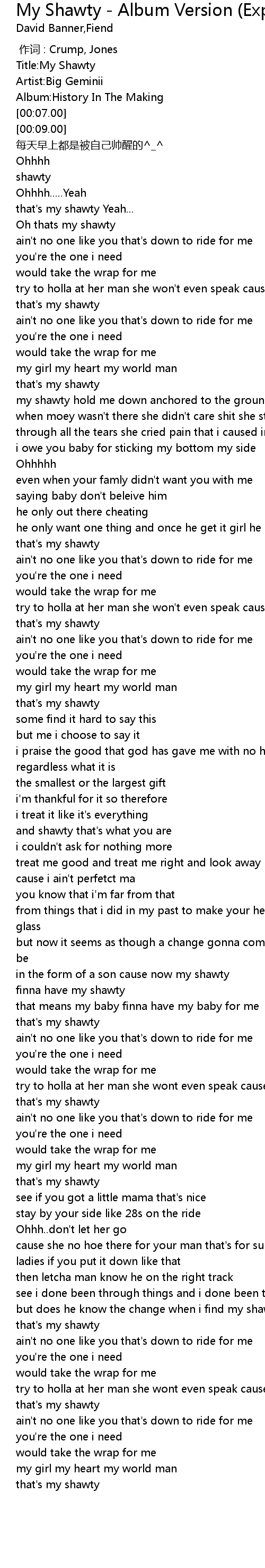 | [00:01.00] | Title:My Shawty |