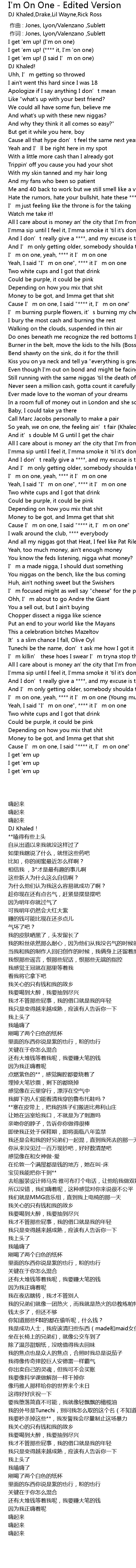 | [01:35.32] | Cause I’m on one, I said "**** it, I’m on one" |