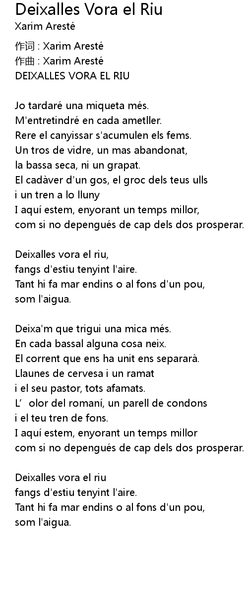 | Song | Deixalles Vora el Riu |