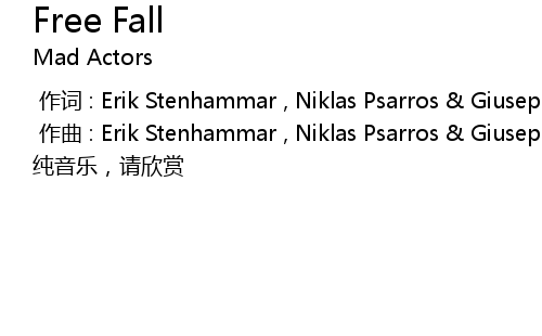 | [00:01.000] | 作曲 : Erik Stenhammar , Niklas Psarros & Giuseppe Mango |