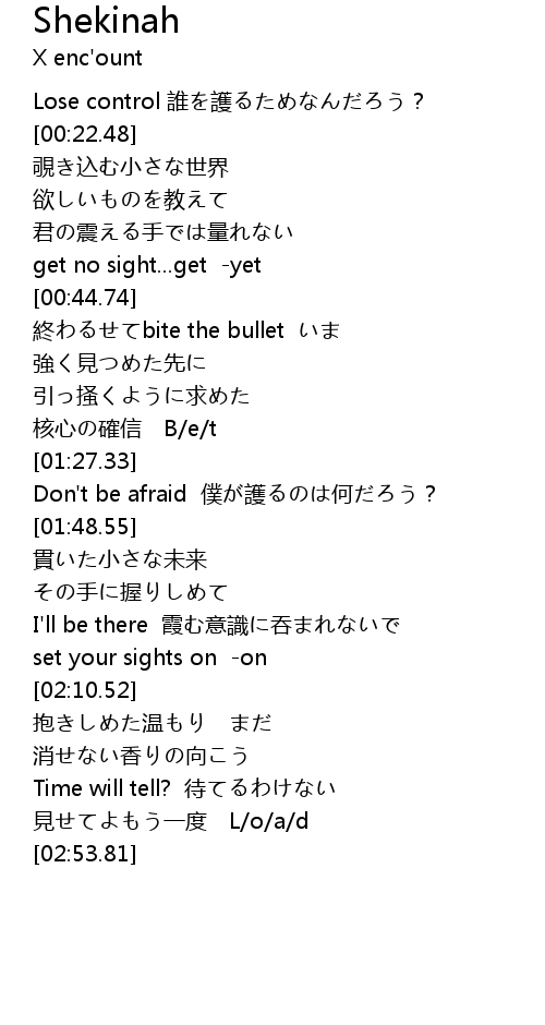 | [00:12.30] | Lose control 誰を護るためなんだろう? |