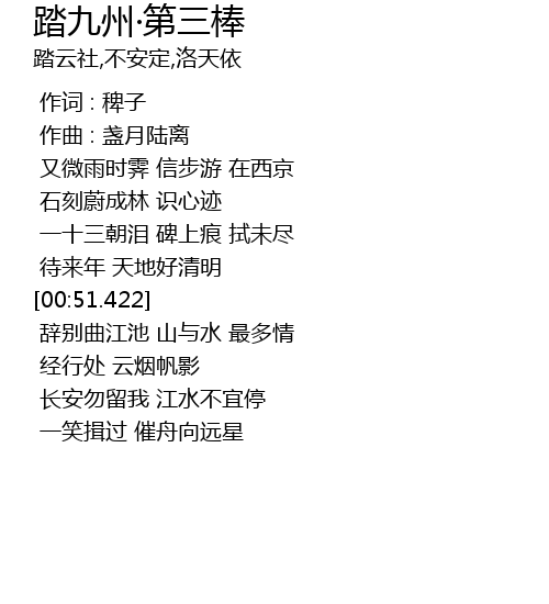 | [00:51.878] | 辞别曲江池 山与水 最多情 |