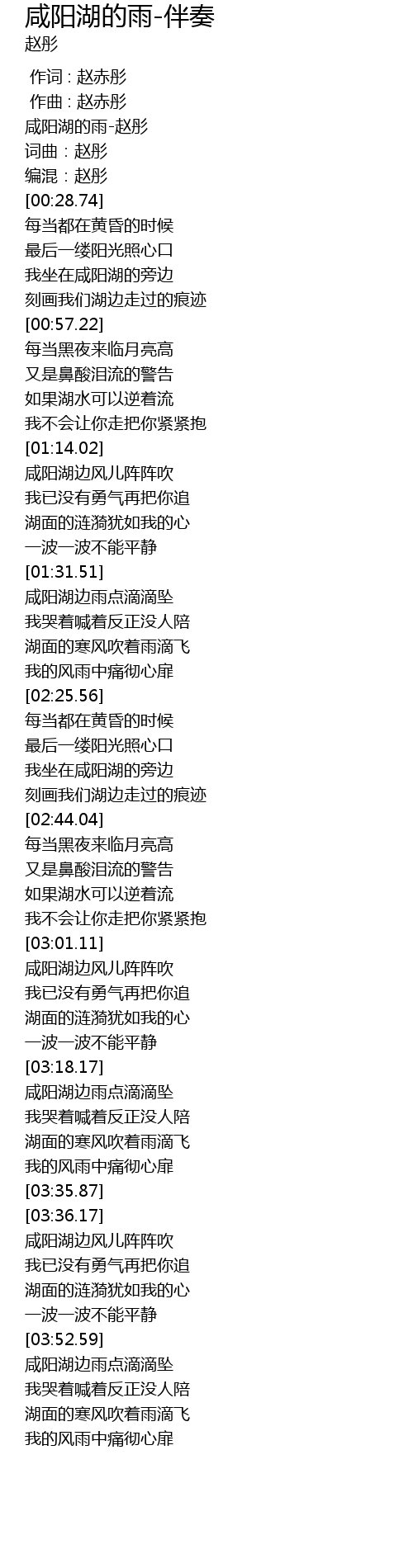 | [00:08.70] | 咸阳湖的雨-赵彤 |