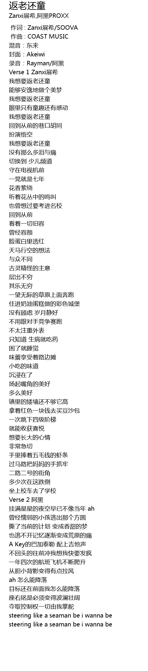 | [00:16.271] | wǒ xiǎng yào fǎn lǎo huán tóng |
