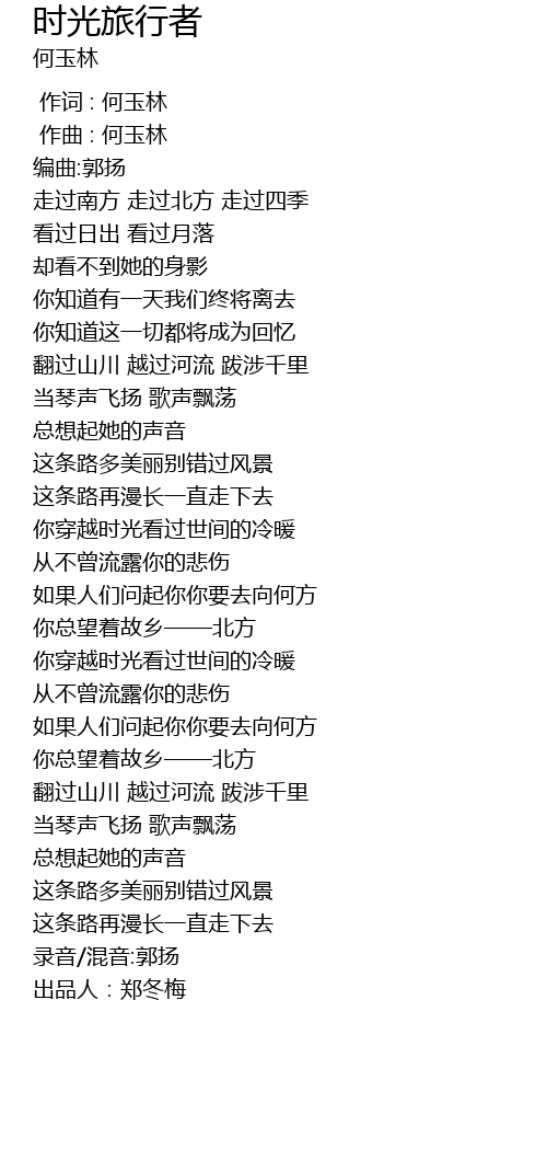 | [00:46.146] | zou guo nan fang zou guo bei fang zou guo si ji |