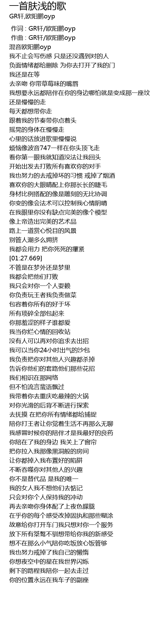 | [00:00.000] | 作词 : GR轩/欧阳鹏oyp |