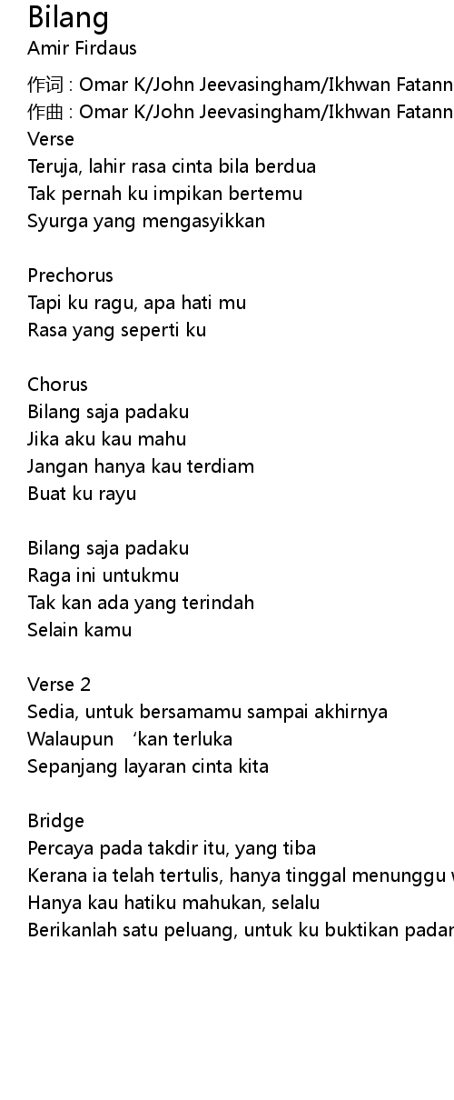 | 作词 : Omar K/John Jeevasingham/Ikhwan Fatannah | |