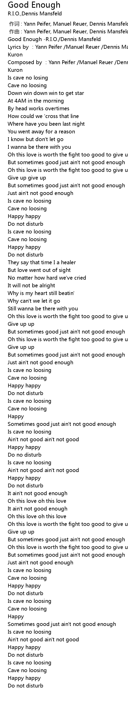| [00:00.00] | Good Enough R. I. O. Dennis Mansfeld |