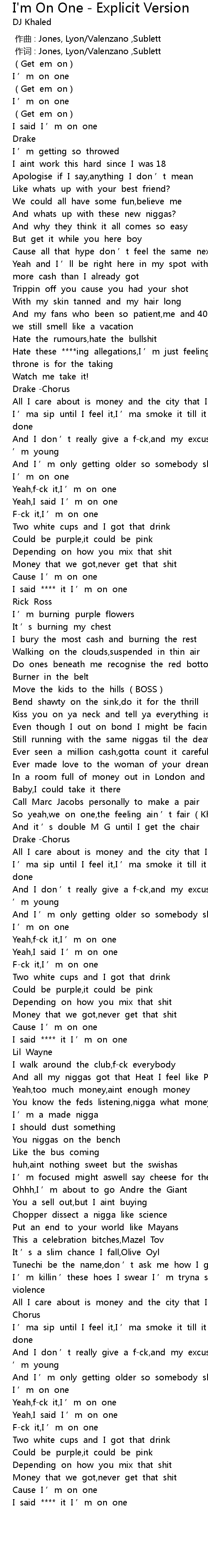 | [00:58.558] | Hate these ****ing allegations,I ’m just feeling like the throne is for the taking |